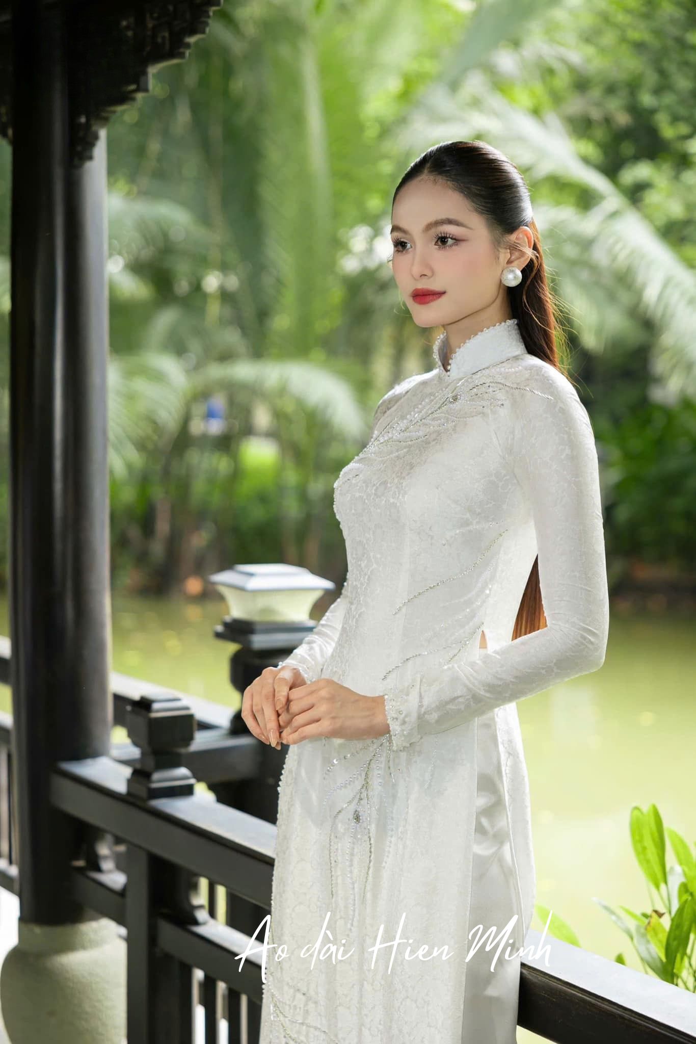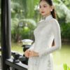Áo dài nữ truyền thống màu trắng hoạ tiết đính kết cao cấp
