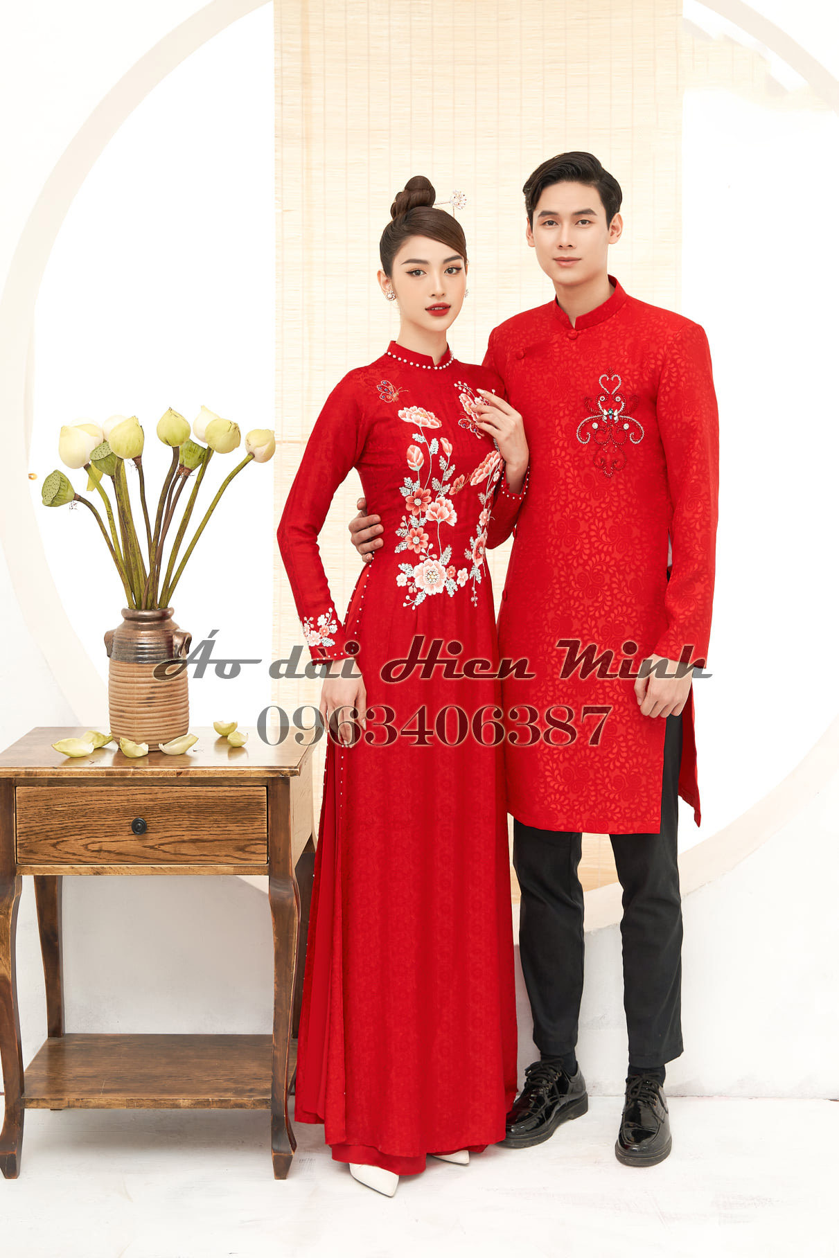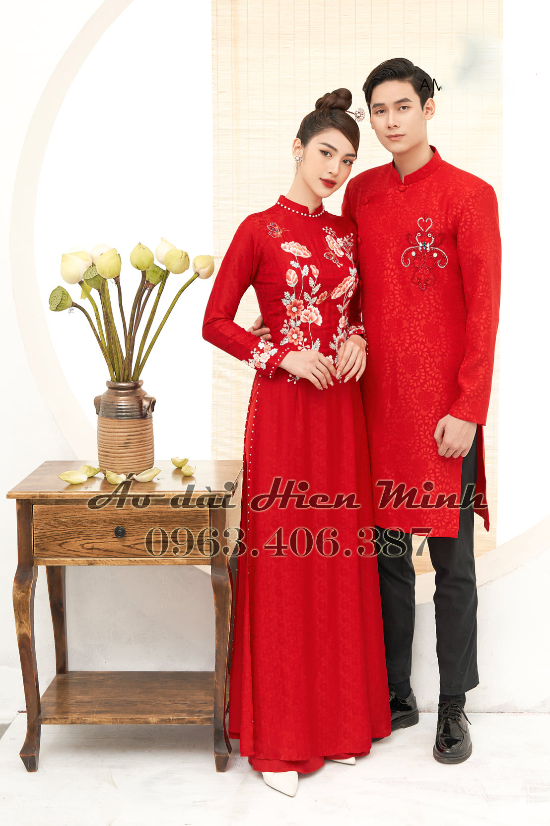 Đánh giá Áo dài ăn hỏi màu đỏ vải gấm hoạ tiết thêu cao cấp