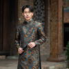 Áo dài nam Gấm cao cấp thiết kế form veston lên form đứng form, nam tính