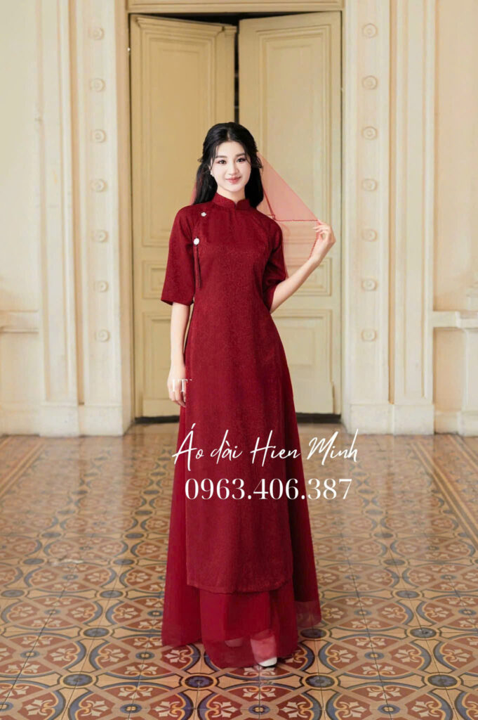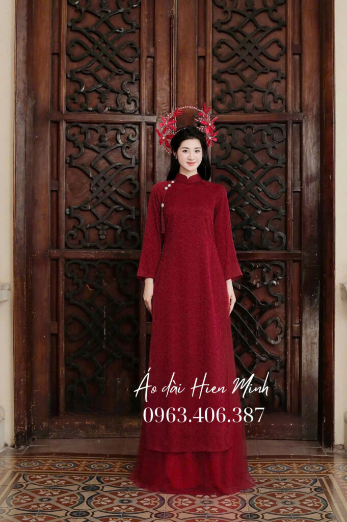 Áo dài cô dâu màu đỏ vải gấm cao cấp