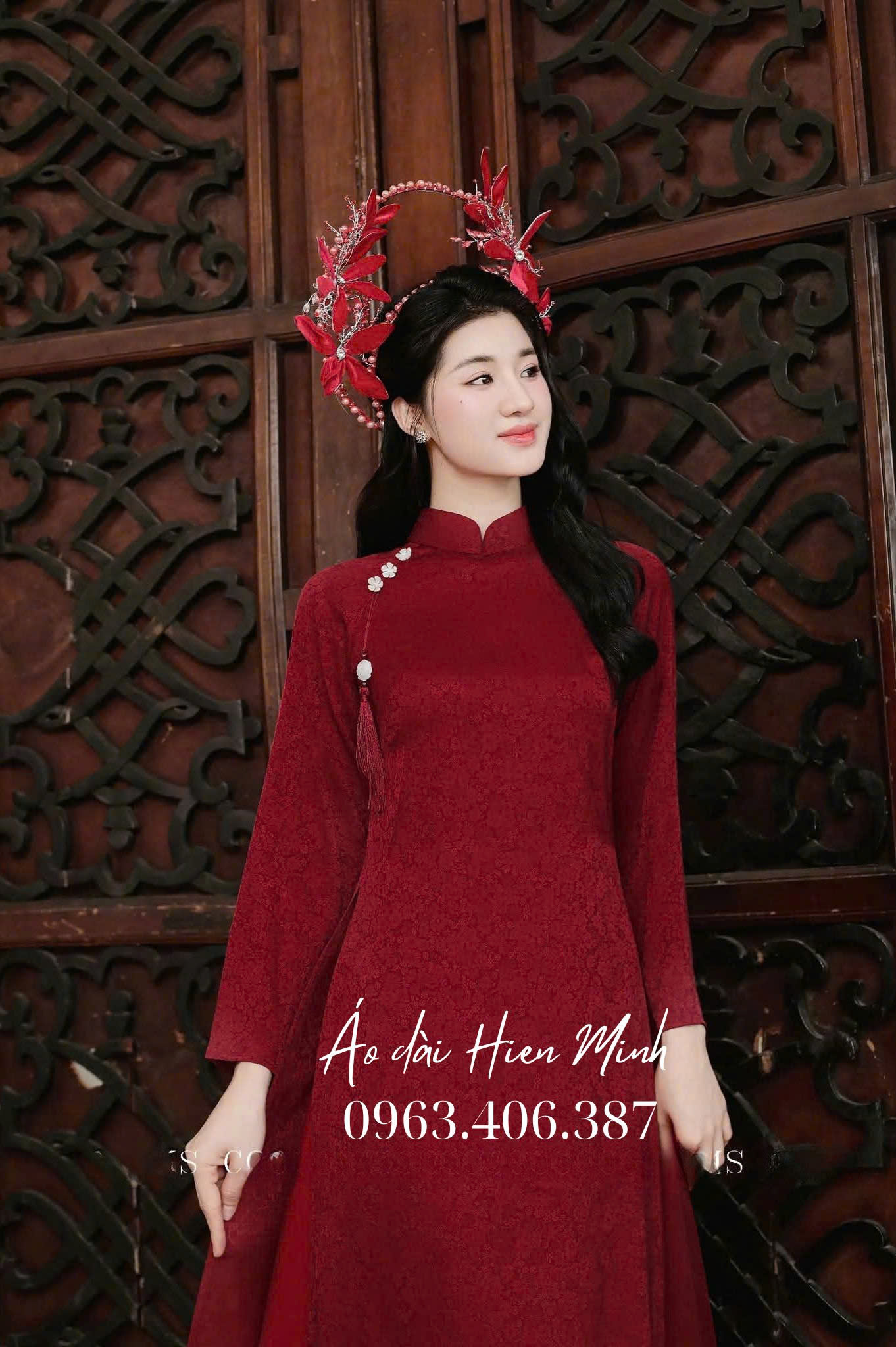 Áo dài cô dâu màu đỏ vải gấm cao cấp