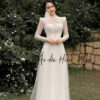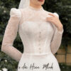 Chất liệu ren cao cấp kết hợp kỹ thuật đính kết thủ công tỉ mỉ, giúp nàng tỏa sáng rực rỡ nhưng vẫn giữ trọn vẻ đẹp nhẹ nhàng, thanh thoát trong ngày trọng đại.