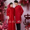 Áo dài cưới đôi màu đỏ cách tân sang trọng, hiện đại