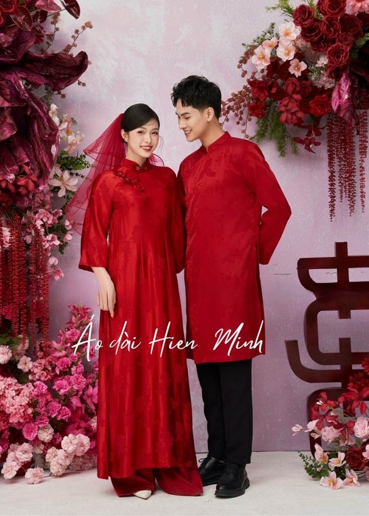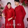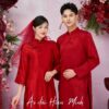 Áo dài đôi màu đỏ sang trọng, hiện đại