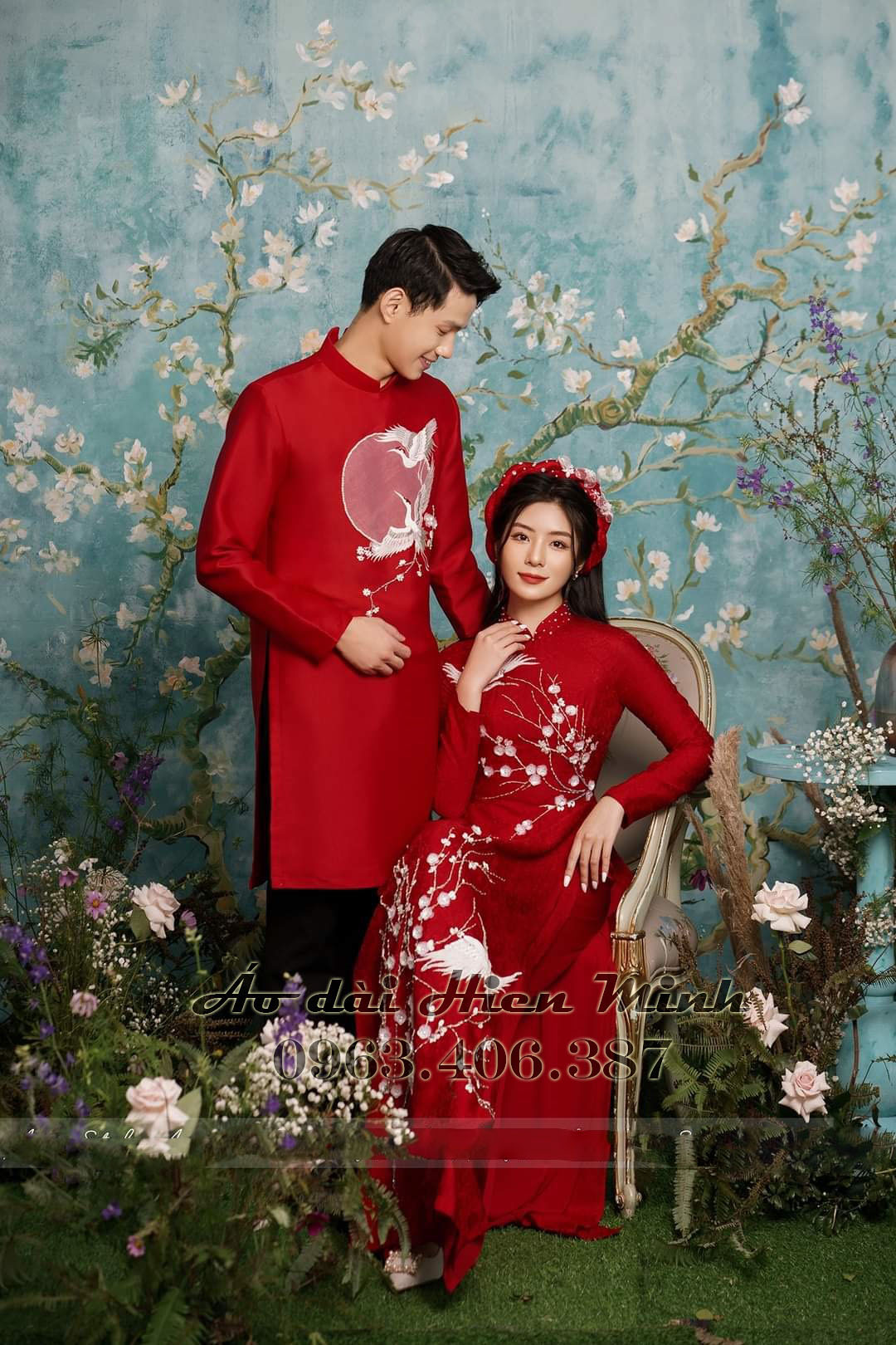 Đánh giá Áo dài cưới đôi màu đỏ hoạ tiết thêu cao cấp