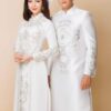 Áo dài cưới đôi màu trắng nhẹ nhàng, sang trọng