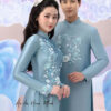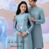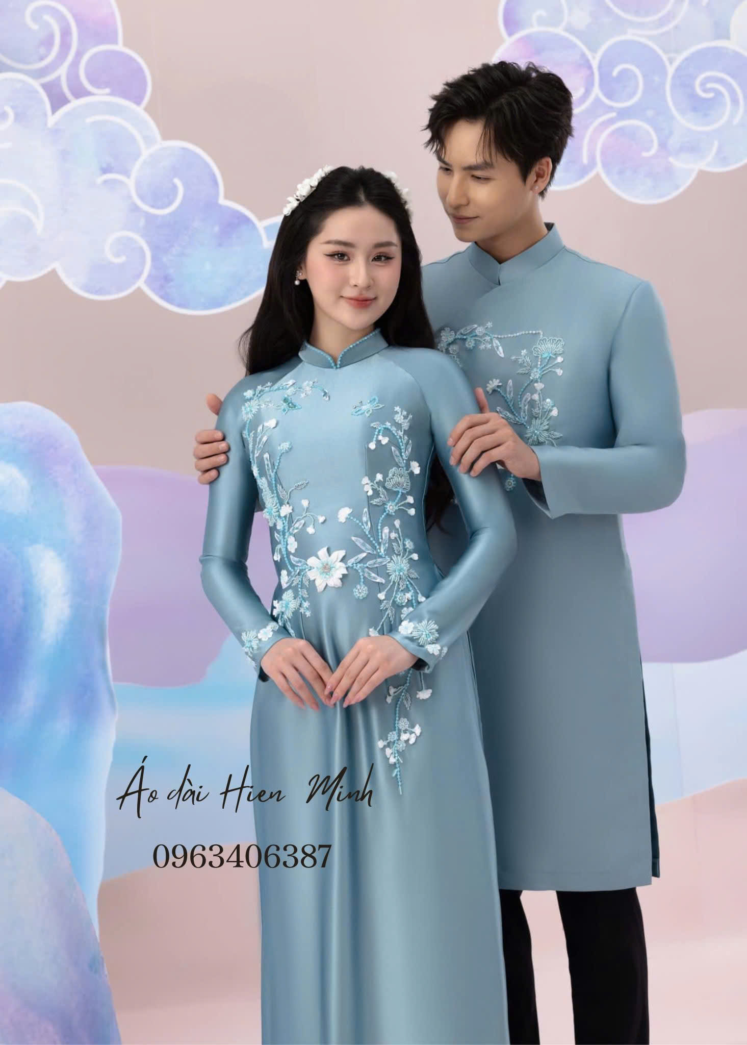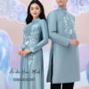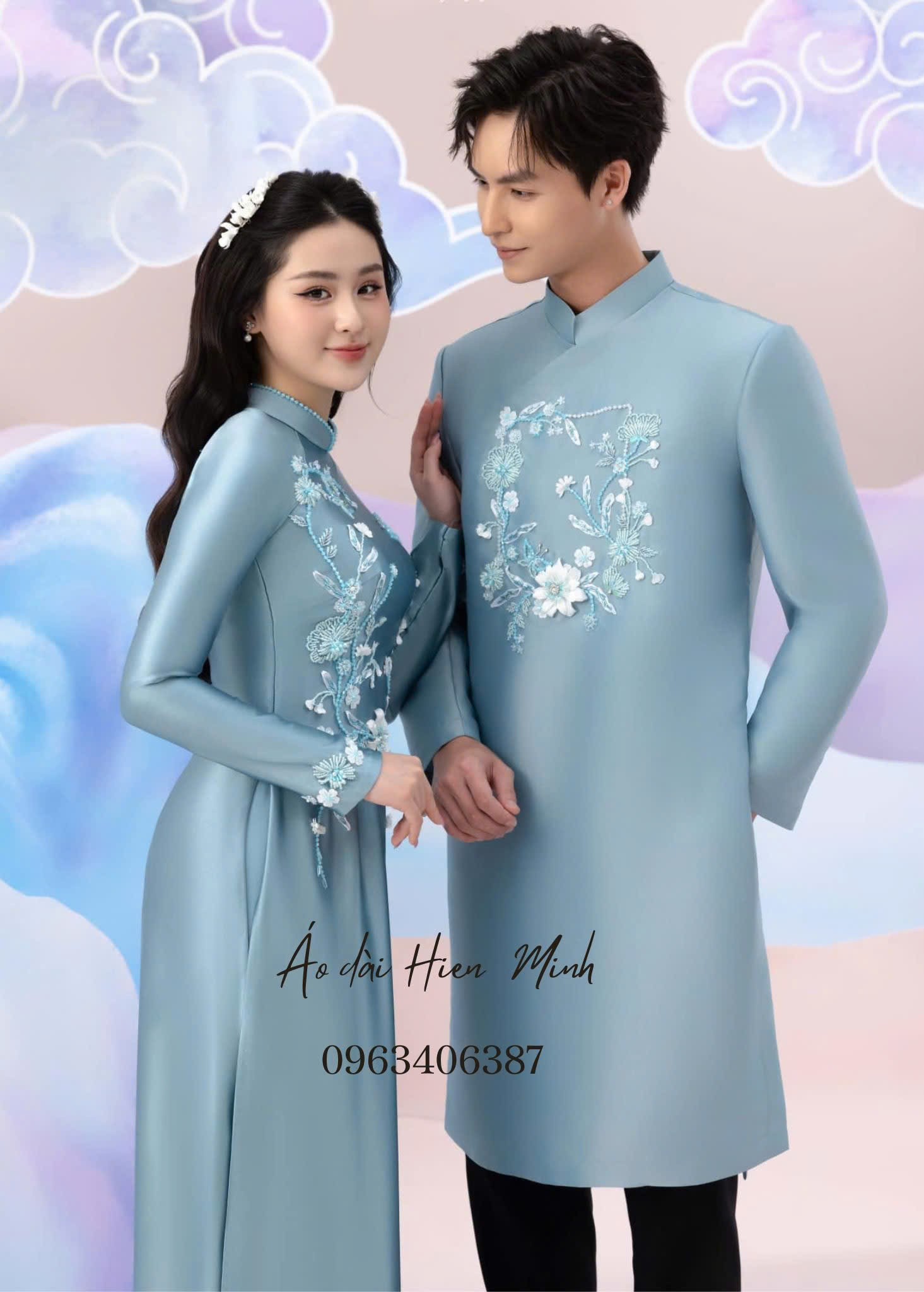 Cặp áo dài cưới đôi xanh pastel thêu hoa trắng mang phong cách nhẹ nhàng, thanh lịch. Thiết kế tối giản hiện đại, tôn dáng nhẹ nhàng, chất liệu lụa mềm mịn thoáng mát – phù hợp cho các cặp đôi yêu thích sự nhẹ nhàng, thanh lịch
