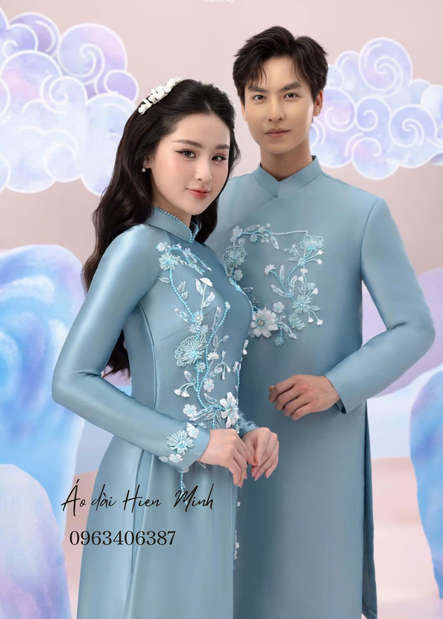 Áo dài đôi màu xanh nhẹ nhàng, thanh lịch