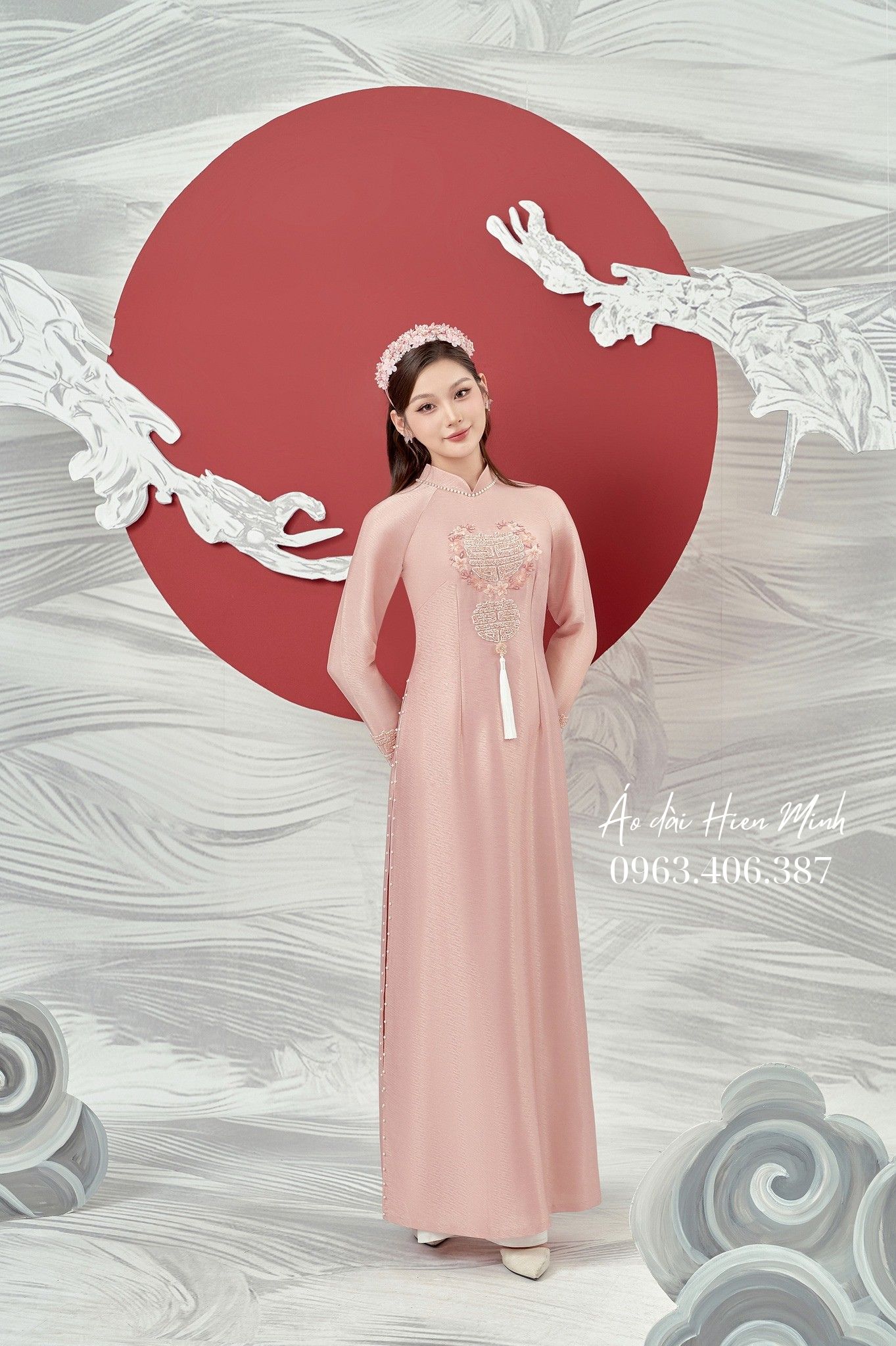 Áo Dài Cô Dâu Hồng Pastel Thêu/Đính Kết Chữ Hỷ: Biểu Tượng Hạnh Phúc Cho Ngày Trọng Đại