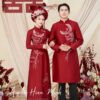 Áo dài cưới màu đỏ sang trọng dành cho cô dâu chú rể