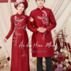 Áo dài cưới đôi màu đỏ luôn là lựa chọn truyền thống nhưng chưa bao giờ lỗi thời dành cho các cặp đôi trong ngày trọng đại. Với thiết kế đồng bộ, chất liệu cao cấp và đường thêu tinh tế, mẫu áo dài cưới nam nữ này mang đến sự hòa quyện giữa hiện đại và bản sắc văn hóa Việt.