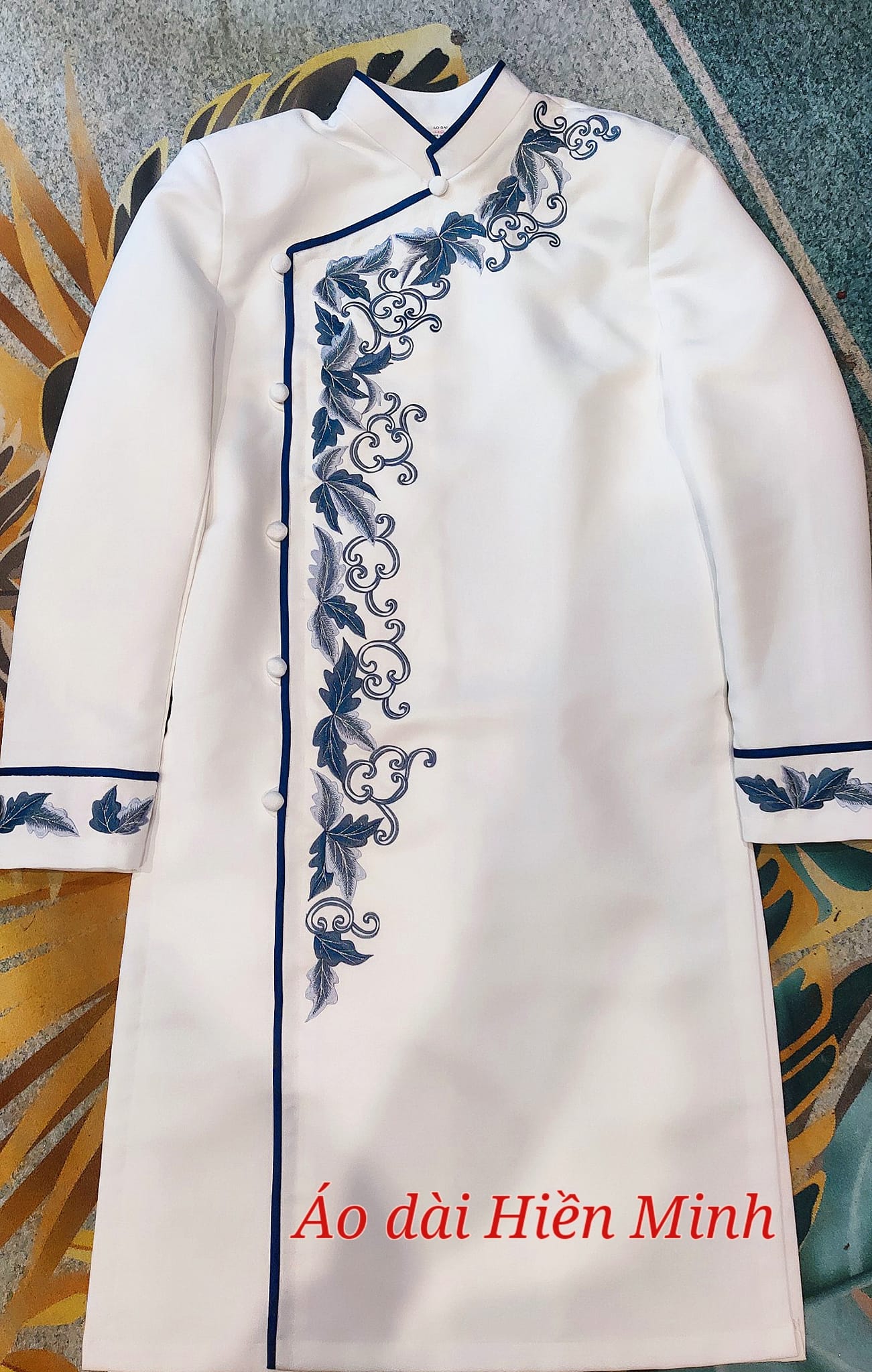 Đánh giá Áo dài nam thêu hoa dây leo đơn giản màu trắng