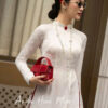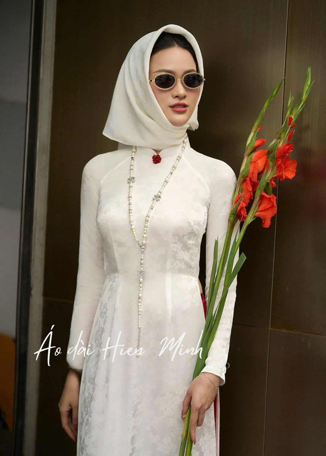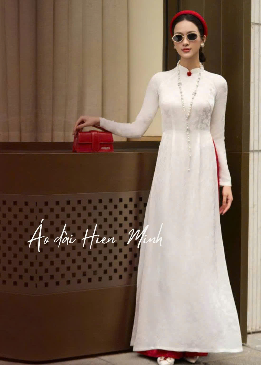 Tôn vinh vẻ đẹp truyền thống trong thiết kế hiện đại, mẫu áo dài trắng gấm hoa từ Overa Hiền Minh mang đến sự tinh tế, trang nhã và đầy khí chất cho người mặc.