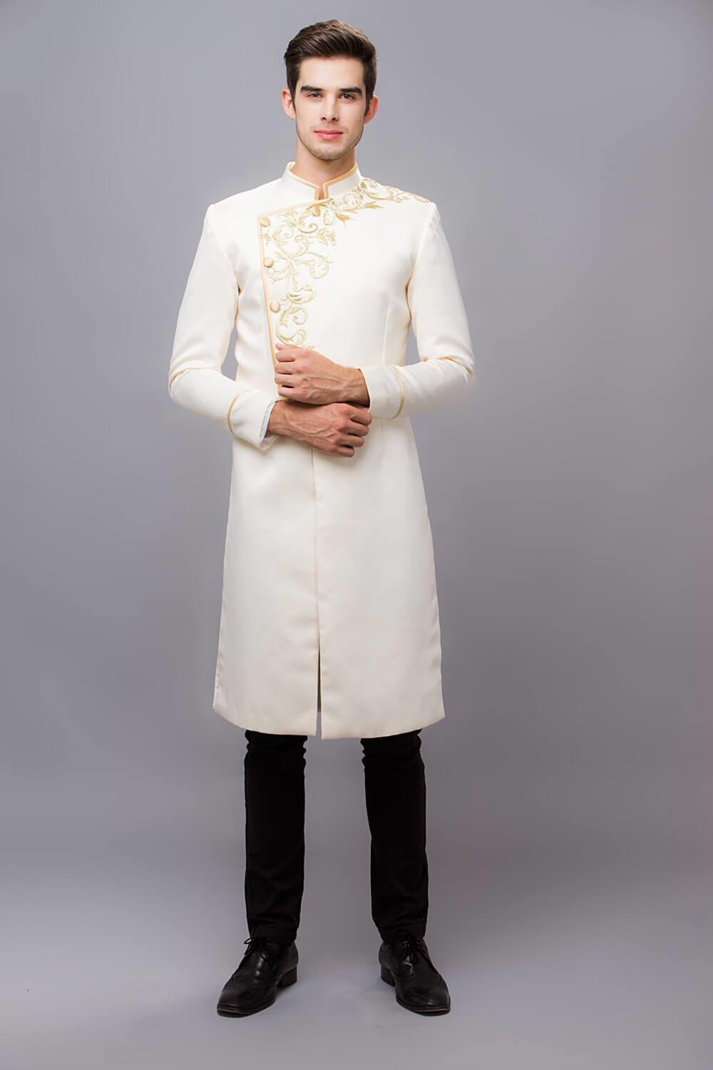 Áo dài cưới hỏi cho nam màu trắng cắt may thủ công cao cấp sang trọng.